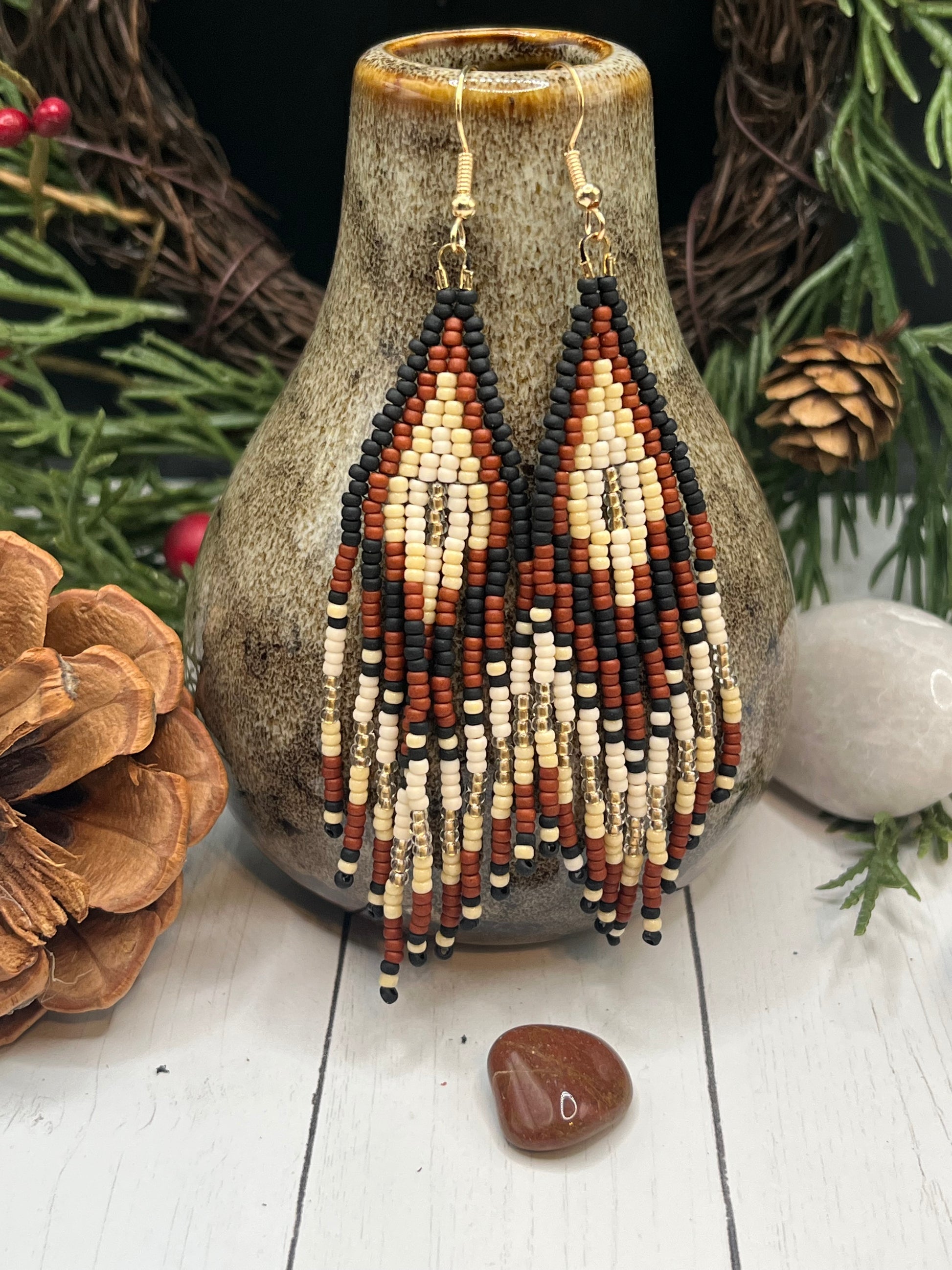 This beautiful hand stitched beaded earrings is about 3” long! Light weight and matches with so many outfits!